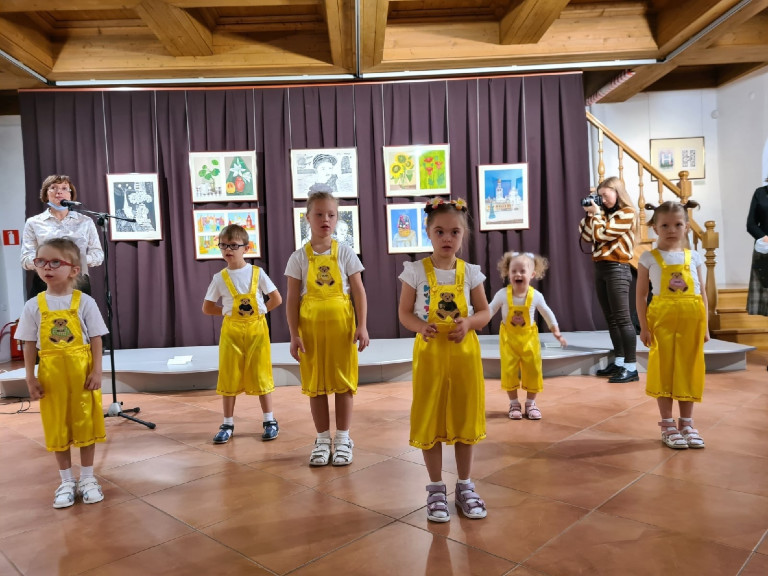 На фото: самые младшие артисты интегральной студии эстрадного танца "Дежа Вю" дебютировали на открытии экспозиции.
