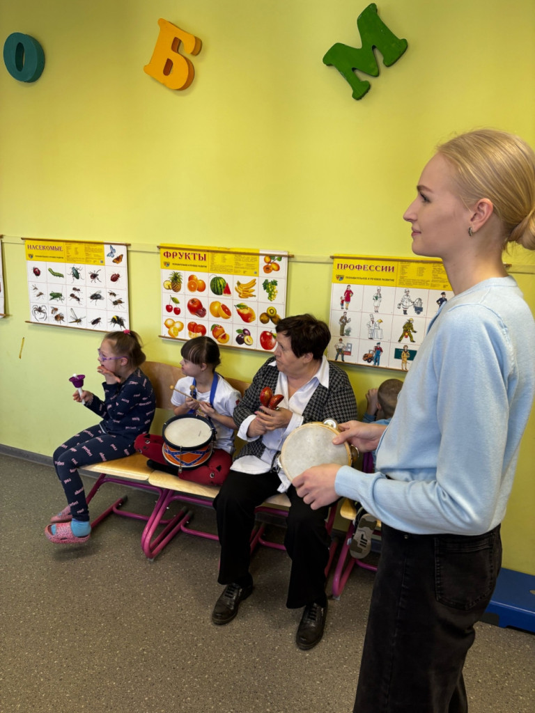 "После приветствия занимались игрой на различных инструментах в сопровождении видео, что активизировало внимание детей: играли по очереди. Повторили движения под песню про оленя, водили хоровод и упражнялись в произношении названий фруктов и овощей в ритмических примерах", - рассказала педагог Любовь Марченко.