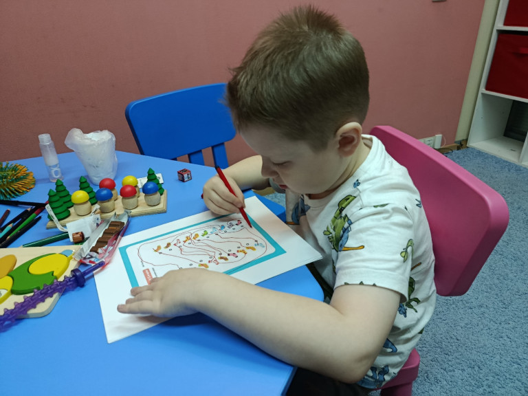 На занятиях с дефектологом ребята с РАС успешно повторили и закрепили навыки, освоенные в течение месяца
