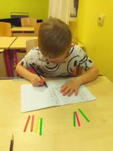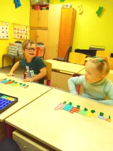 "Продолжаем вспоминать старый материал по счету и глобальному чтению. Повторяем тему "Домашние и дикие животные" при помощи "Чудесного мешочка", - рассказала педагог Ирина Дубровская.