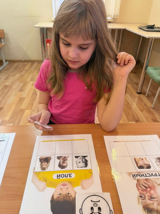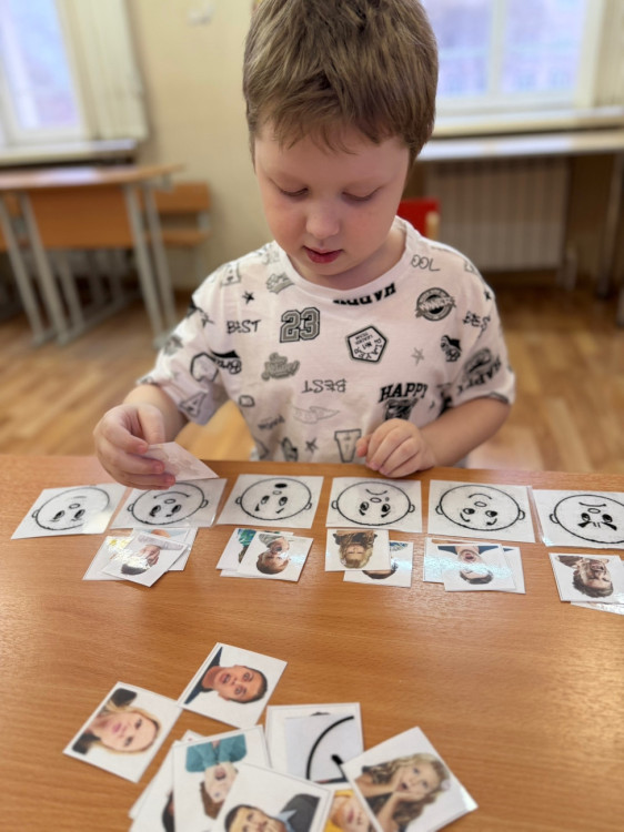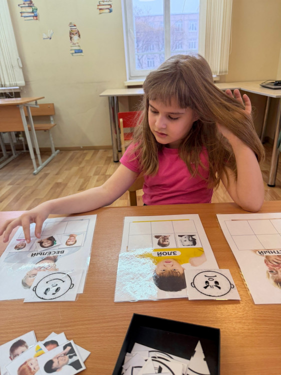 "Продолжаем закреплять навыки через действие. На занятиях классифицируем и создаем символы эмоций. Учимся рисовать "схематичное лицо". Прорисовывая элементы мимики (брови, наклон рта), ребенок лучше запоминает их значение. Сортируем фото по эмоциональным состояниям. Сортировка реальных фото заставляет ребенка фокусироваться на глазах и губах, тем самым запоминаются мимические признаки каждого состояния", - рассказывает психолог Мария Округина.