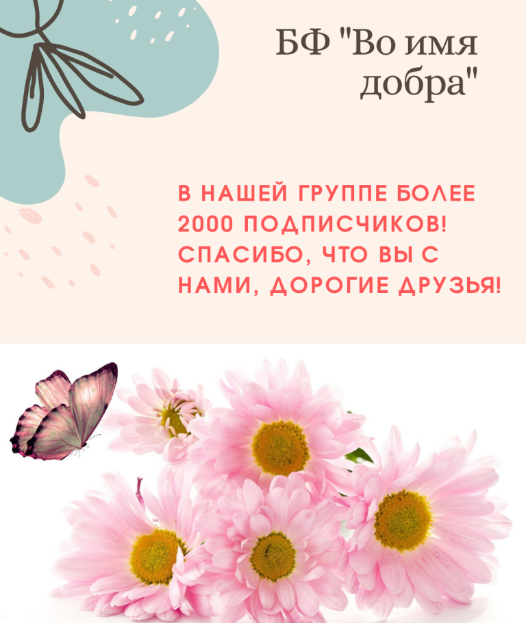 Уважаемые друзья и коллеги! У нас радостная новость: на утро сегодняшнего дня численность наших подписчиков в социальной сети "ВКонтакте" перевалила за отметку 2000 человек! Ура! Спасибо, что вы с нами! Мы ощущаем вашу поддержку в добрых делах. Добавим, что новости нашего фонда также можно читать: в группе в ФБ - https://www.facebook.com/voimydobravologdа