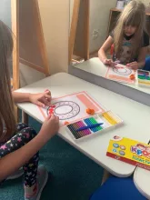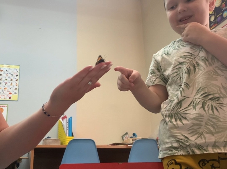 "Начинаем вводить академические навыки. Звук [О], буква О. Адаптируем материал под навыки детей. Начинаем и продолжаем работать над звукопроизношением, пониманием обращенной речи. И сегодня случилось маленькое летнее чудо - к нам залетела погреться бабочка, сколько эмоций и радости", - рассказала логопед Ирина Алексеенкова.