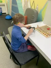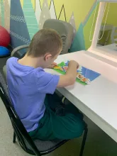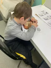 "Основной частью занятий была подготовка к празднику пап. Если с младшими ребятами мы разучивали стихотворение про папу, то школьники рассказывали без запинок. Также продолжили работу над развитием мышц артикуляционного аппарата через артикуляционную гимнастику. А фонематическое восприятие формировали через задания на соотнесение картинки с предложением", - рассказала логопед Марина Крылева.