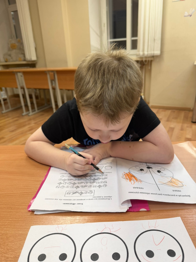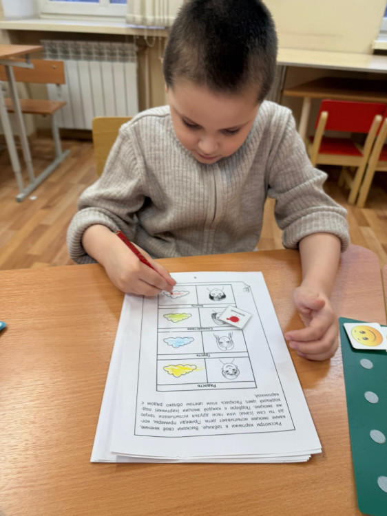 "Продолжаем изучать базовые эмоции и развивать способности детей, опираясь на индивидуальные цели каждого ребенка. На занятиях виды деятельности чередуются: задания, требующие сосредоточения, сменяются сенсорными разрядками или игрой по выбору ребенка. Используется визуальная поддержка (картинки, карточки, таймеры), а также положительное подкрепление за каждое успешное действие", - рассказала психолог Мария Округина.