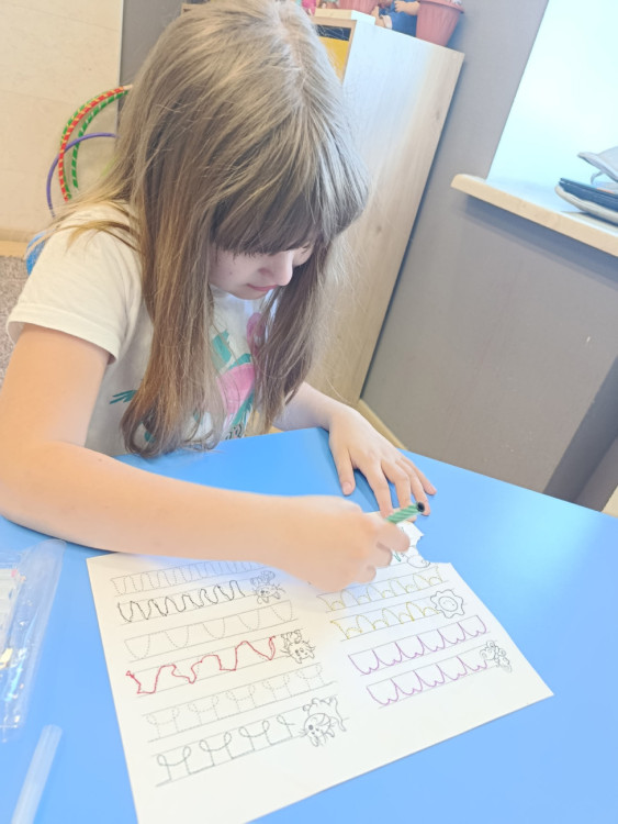 "Продолжаем закреплять графомоторные навыки, счета, просьб и т.д. Работаем над развитием внимания и мышления", - рассказала дефектолог Александра Болдырева.