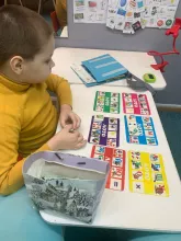 "Праздники праздниками, а логопед по расписанию. За первые дни Нового года мы продолжаем отрабатывать навыки коммуникации с помощью АКД, с помощью игр провоцируем диалог. А вот академические навыки в каникулярный период отложили, посвятили занятия «новогодней» лексике и грамматике, а также играм", - рассказала логопед Ирина Алексеенкова.