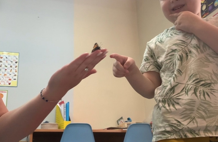 "Начинаем вводить академические навыки. Звук [О], буква О. Адаптируем материал под навыки детей. Начинаем и продолжаем работать над звукопроизношением, пониманием обращенной речи. И сегодня случилось маленькое летнее чудо - к нам залетела погреться бабочка, сколько эмоций и радости", - рассказала логопед Ирина Алексеенкова.